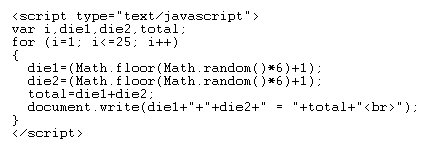 谢谢你的赞美。那个程序是用 JavaScript 编写的。生成随机数只需一行简单的命令。Math.random() 会返回一个介于 0 到 1 之间的随机小数。这里有一个生成 25 次掷骰子的简单程序。如果你刷新此页面,每次都会得到不同的结果。