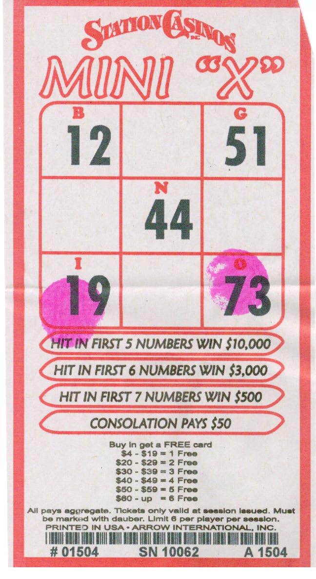 Station Casinos 根据宾果游戏玩家的消费金额,向其提供免费的“Mini X”宾果卡,具体如下:
