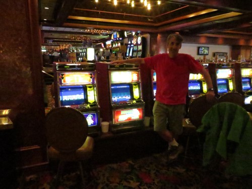 是的,那台机器已经不存在了。正如你所指出的,之前排名第二的游戏现在上升到了第一的位置。那是埃尔科特斯赌场的一款双倍双骰游戏,赔率高达100.92%。完整的赔率表是940-400-25-16-13-4-3-2-2-1。你可以在赌场北端的老虎机房里找到它,那里摆满了老式的阴极射线原机。这是我站在它旁边的照片。