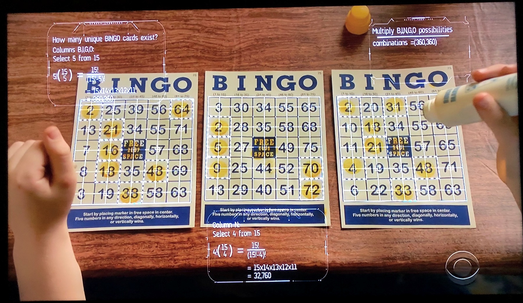 在《少年谢尔顿》第三季第四集《霍比特人、物理学和拉链球》中,谢尔顿问自己一张宾果卡上可能的组合数。答案是什么?节目中显示的公式正确吗?