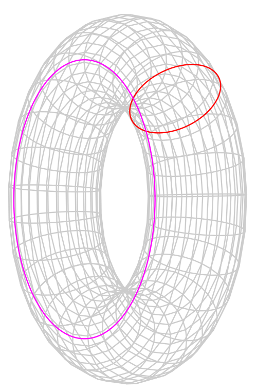 对于 r=1 且 R=1 的环面,我们得到其表面积为 39.478418,体积为 19.739209。有趣的是,表面积与体积之比,或者说釉面比,恰好是 2。