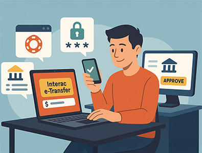 Interac 电子转账是一种简便的方式,可以直接从一个银行账户向另一个银行账户(即您的个人账户和离岸在线赌场的账户)发送、请求或接收资金。