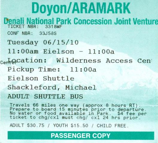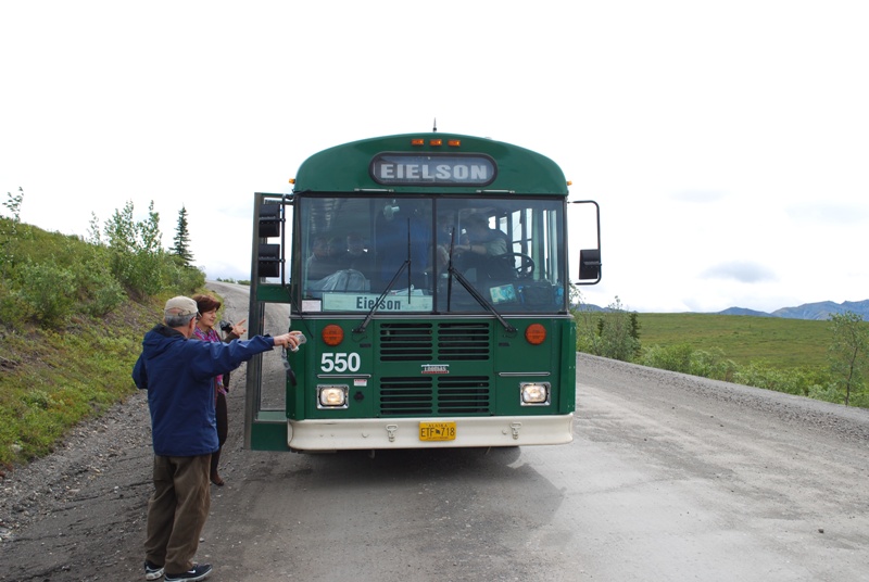 与交通相对便利且开发完善的锡安国家公园和大峡谷不同,进入德纳里国家公园需要经过一条 92 英里长的蜿蜒土路。此外,在德纳里国家公园,我们没有乘坐免费舒适的班车,而是只能乘坐难看的旧绿色校车,而且必须额外付费。虽然还有其他一些更好看的巴士,但我认为您必须参加阿拉斯加旅游才能乘坐。花大半天时间乘坐绿色巴士沿土路行驶,这并不是我这个城市男孩所认为的轻松假期。我能上车已经很幸运了,因为巴士数量有限,而且大多数时候都挤满了人。我想大多数人都提前买好了票。我去艾尔森游客中心的往返成人票花了 30.75 美元,艾尔森游客中心在路上 66 英里处,不要将其与费尔班克斯郊外的空军基地混淆。