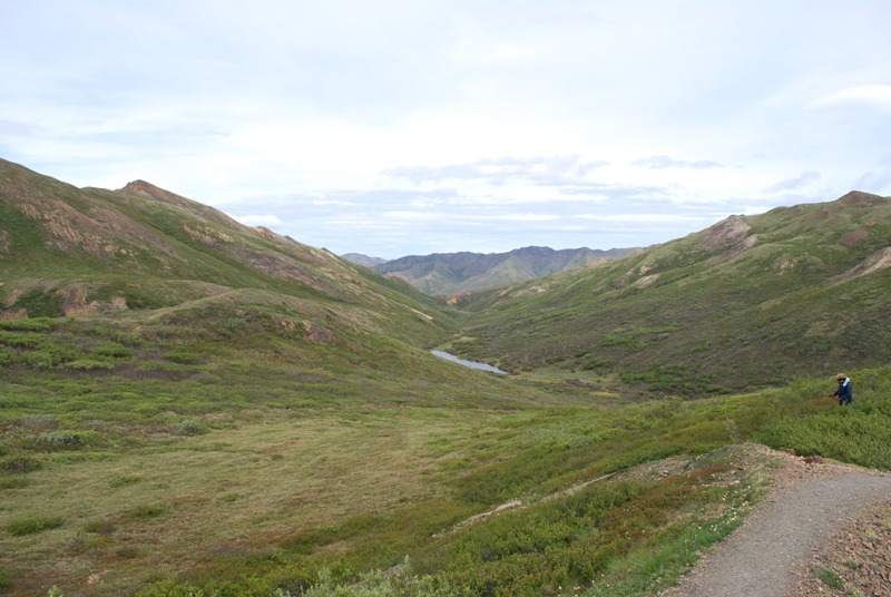 我已经抱怨过校车了,但公园的景色和野生动物呢?公园本身我暂时不会说坏话。它可能是我看到过的美国“最少受文明影响”的地方。大部分时间,这里都是绵延数英里的丘陵和小山峰,阿拉斯加山脉和麦金利山等更大的山峰则更远。然而,对于我这个徒步旅行者来说,坐在校车上欣赏公园景色实在令人沮丧,因为公园允许你在公园里几乎任何你想去的地方徒步旅行和露营。没有小径,只有美丽的户外景色。在美国,这样的地方已经不多了。然而,如果你坐在校车上,所有的自由和冒险的可能性对你来说并没有什么好处。