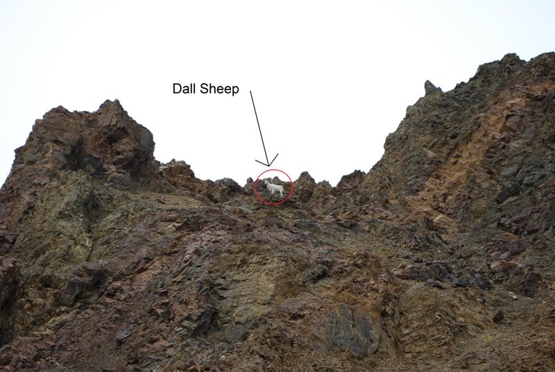 那么野生动物呢?很多德纳里国家公园的明信片上都印着巴士在等待熊的家族过马路的场景。就连旅游指南也说德纳里是美国观赏野生动物的最佳地点之一。旅程开始时,司机说车上任何人看到任何东西都应该大喊“停车!”。我们遇到过两次这样的情况。一次是看到一只大角羊,另一位乘客非常敏锐,在路边高高的岩石峭壁上发现了它。我不得不承认,我们仔细地观察了它,尤其是通过我相机的变焦镜头。另一次是看到远处山上的三只熊——一只母熊和两只幼崽。一定是有人用了很好的双筒望远镜才发现它们。我只能在远处看到那只熟睡的母熊,就像一个黑点。如果不是有人告诉我那是一只熊,我永远也不会知道。