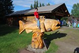费尔班克斯市中心有点萧条。它似乎正遭受着中产阶级迁往郊区的困扰,这种现象在美国许多城市都很常见。它毗邻一条非常漂亮的河岸,公园空间充足。我们在索皮·史密斯的“老时光”餐厅吃了午饭。墙上挂满了阿拉斯加常见的旅游景点装饰,比如雪鞋、鹿角等等。在我们参观的过程中,老板向顾客们讲述了他的家族在阿拉斯加政坛的历史以及这家餐厅的故事。他说他是阿拉斯加前州长的孙子。总的来说,这家餐厅略显俗气,但仍然令人愉快,食物也不错。
