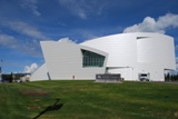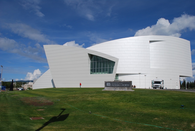 这是阿拉斯加大学校园里一栋宏伟的现代化建筑。这种现代建筑风格在费尔班克斯似乎有些格格不入,但没关系。馆内展览堪称一流,展出了超乎你想象的阿拉斯加野生动物和美洲原住民文物。馆内还有一个大型剧院,座位布局类似体育场,轮流放映三部不同的电影。我看了一部关于费尔班克斯生活的电影,另一部关于北极光的。观赏北极光绝对是我的“愿望清单”之一,而阿拉斯加中部正是观赏北极光的绝佳地点。