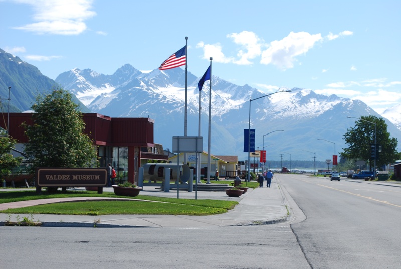离开费尔班克斯后,我们向南行驶了360英里,到达瓦尔迪兹。一路风景优美,沿途经过湖泊和白雪皑皑的山脉。阿拉斯加输油管道也经常可见,因为它也沿着这条线路,只是部分时间是在地下。