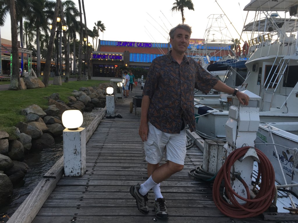 我在那里玩了一场二十一点,一对一。我们玩了一整副牌,荷官一句话也没说,也没做任何友好举动。他赢了赌注,就把筹码猛地扔进托盘里。我感觉他平时可能是保镖,但有一天有个荷官请病假了。阿鲁巴的车牌上写着“一个友好的岛屿”,但我想,想出这句口号的人肯定没见过这位荷官。