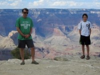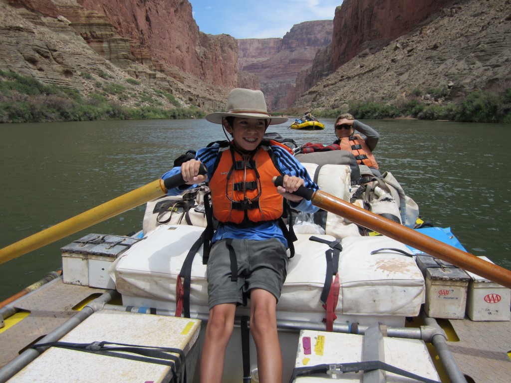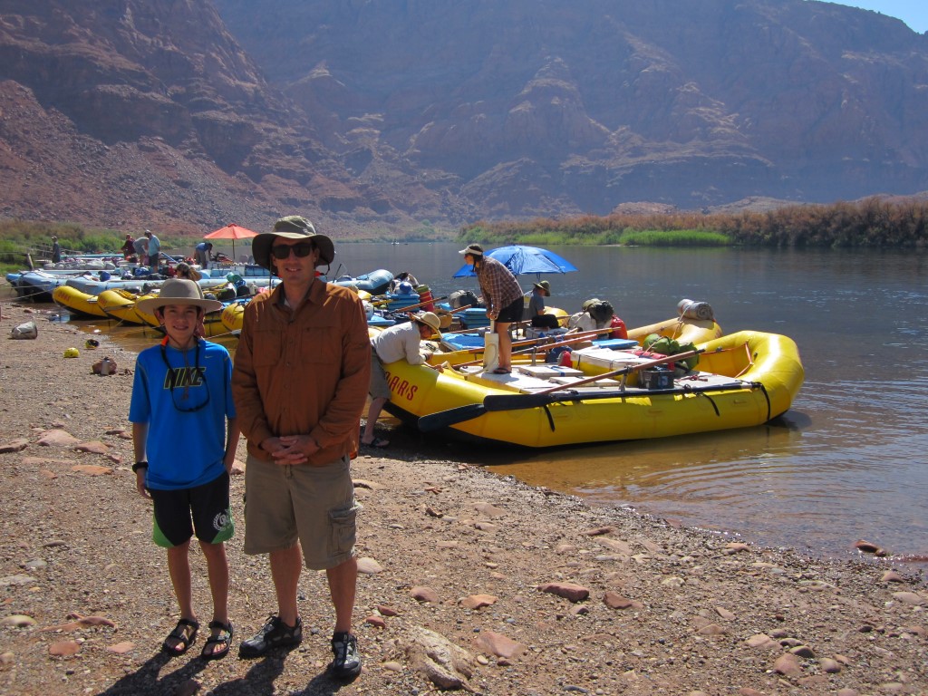 通常情况下,OARS 的最低年龄要求是 12 岁。我们当时参加的时候,我儿子 11 岁半。所以我申请了例外。我向 OARS 保证,他游泳很好,可以徒步走出峡谷,这一点可以从他 10 岁时我们俩在惠特尼山顶峰的照片(ULR 图片)中看出。其实我更想去大峡谷的第二段,但 OARS 同意让 Aidan 去,前提是我们要换到第一段,因为那里的急流比较缓和。