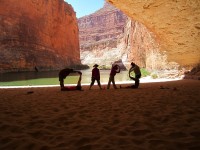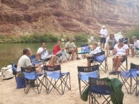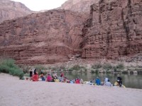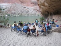 之后,阿曼达和其他几家漂流公司的负责人讨论了当晚的露营计划。我们没能离开幻影牧场太远,因为我们大多数人第二天都要徒步离开峡谷。如果剩下的营地都被占了,我们就会陷入困境。