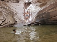 徒步时,我们走进了北峡谷,这是附近数百个峡谷之一。我们的目的地是下方的天然岩坡和水潭。这解释了为什么我建议全天都穿着泳衣。