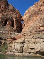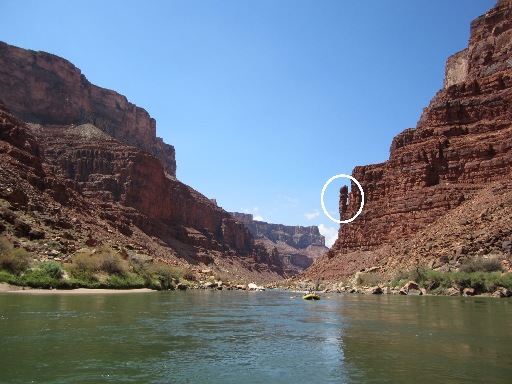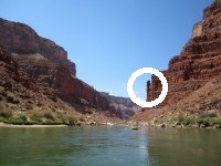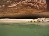 我不太确定,但我记得我们在一个叫“19.4英里营地”的营地扎营,显然是在河下游19.4英里的地方。那里环境优美,阴凉,有沙滩码头,海滩后面的悬崖边上还有个人空间。
