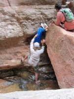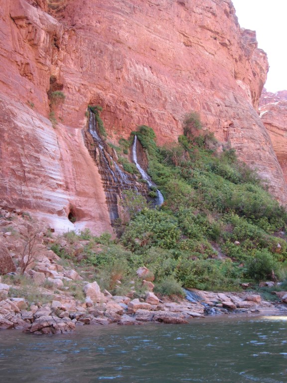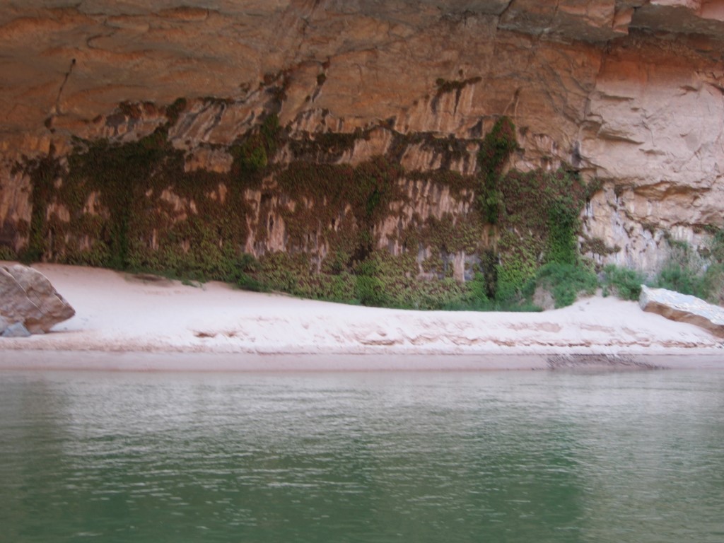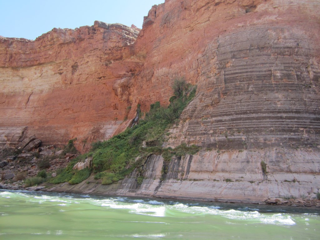 第二天,我们还经过了印第安迪克(Indian Dick) 。没错,地图上就是这么叫的。点击链接可以查看比我拍的更好的照片。之后,我们经过了瓦西天堂(Vasey's Paradise) ,这是一股从峡谷侧面涌出的泉水。这种情况通常发生在含水层与一层不透水的岩石接触时,水会从这层岩石的上方流出。