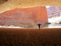 不久之后,我们在红墙洞穴待了一会儿。这是一个巨大的洞穴,底部铺着沙土,约翰·韦斯利·鲍威尔说它可以容纳5万人。恕我直言,鲍威尔先生,我估计这个数字更接近5000人。不过,我估计里面的腿部和肘部空间可能比他想象的要大。事实上,鲍威尔在内战中失去了右臂,所以他想象的肘部空间可能更小。