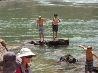 我们被鼓励直接去河里小便,因为他们反正会把尿桶倒进河里。俗话说:“解决污染的办法是稀释。” 起初,包括我在内的这群人似乎不太明白在这么多异性面前小便的礼仪。然而,通常很难找到一个僻静的地方小便,因为海滩通常很小,或者两旁都是茂密的植被或岩石。
