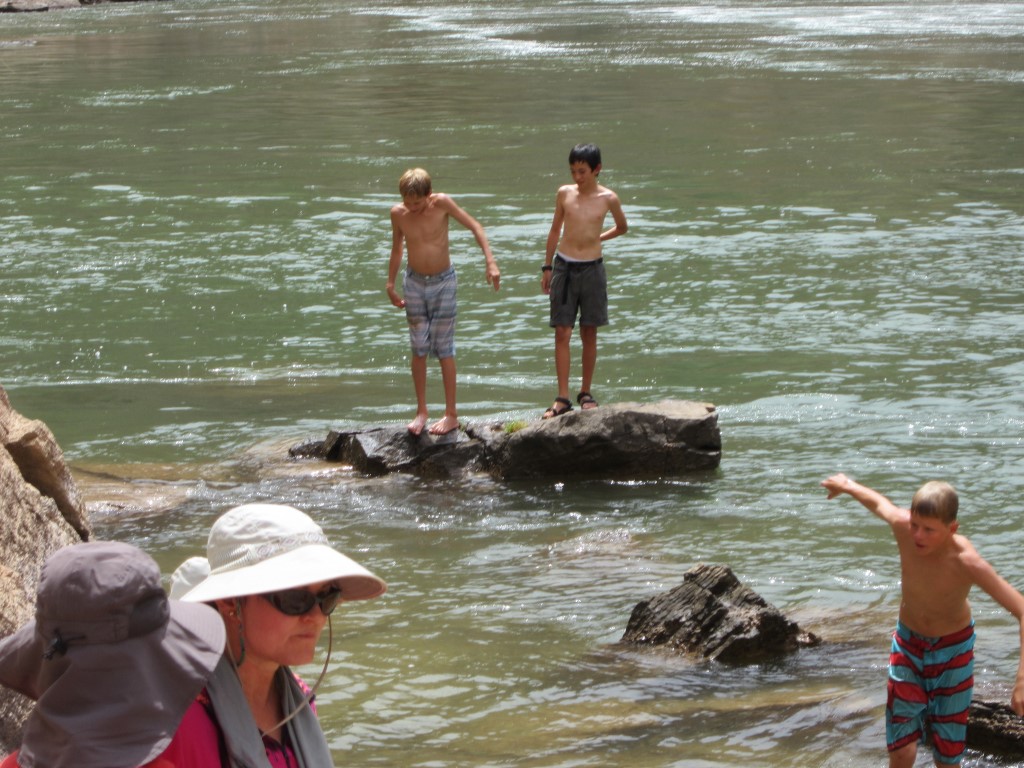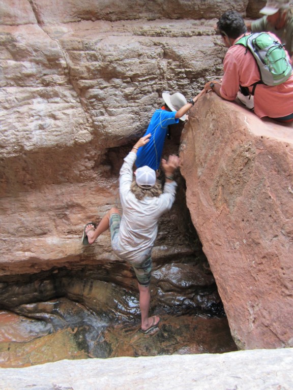 我们大约用了5个小时到达山顶。虽然不算比赛,但我们团队用时大概在4到6个小时之间。我们一行13人在光明天使旅馆集合,享用了冰淇淋或午餐。另外7位没有参加徒步的客人继续在河上进行第二段旅程。
