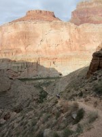 在我看来,从派普溪(Pipe Creek)的河流到南缘的徒步是美国最棒的徒步路线之一。单程七英里的路程会穿越不同的岩层和气候带。下半段大部分路段都处于阴凉处,而且大部分路段沿着一条小溪蜿蜒而行。半山腰是印第安花园(Indian Gardens),那里是一个露营区,提供浴室和饮用水。剩下的路程大多是沿着陡峭的峡谷壁蜿蜒而行。这部分最好在上午10点之前或下午5点之后完成,以避开烈日。从印第安花园通往山腰的小径上,有两处卫生间和水源,分别距离山脊1.5英里和3英里。