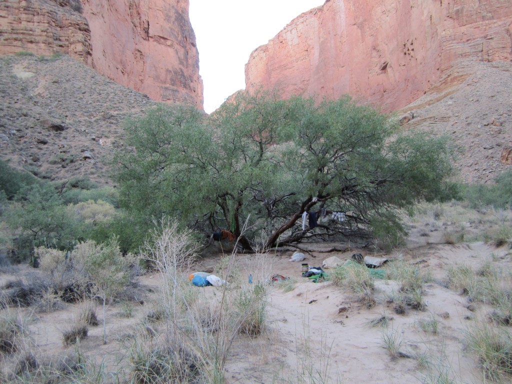 那天我们很早就在一个不错的地方扎营,我记得那是 63 英里处的 Crash Canyon 营地。在我们五个营地中,我最喜欢的是河边那片又大又长的沙滩。