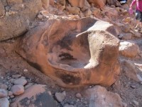 这天我们的导游是斯科蒂,同行的乘客又是圣巴巴拉的母女。河上风平浪静。我们短暂地徒步去看了看鹦鹉螺的化石,这种生物生活在数亿年前。它们形似鱿鱼,体型和足球差不多。在另一次短途徒步中,我们看到了一艘古船的残骸,以及一个标记,那里曾发现过一位早期探险家的遗骸。