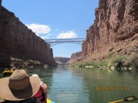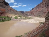 行驶62英里,我们来到了科罗拉多河和小科罗拉多河的交汇处。由于最近的降雨,小科罗拉多河的水质非常浑浊。两河水交汇后,科罗拉多河从晶莹的绿色变成了浑浊的棕色。