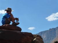 第四天,我们的导游是我最喜欢的Jefe。他是一位经验丰富的老导游,讲了很多关于峡谷的有趣故事。我们的同伴又是那对夏威夷姐妹。如果你想知道他们是怎么决定谁和谁一起划船的,导游鼓励客人每天都换乘,这样他们就能和所有导游一起划船了。这建议不错。否则,就按照先到先得的原则。我暗自担心没人愿意和我一起划船,因为害怕被问到没完没了的琐事和/或说着蹩脚的西班牙语,所以我等其他人都找到船后,我和儿子就占了仅剩的几个位置。