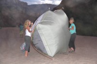 他们还为每两人提供一顶双人帐篷。不过,我们这里不需要。天气不够冷,不需要帐篷。虽然八月是大峡谷雨水最多的月份,但我们只在下午4点到午夜之间经历了短暂的季风。下雨的时候,我已经上床睡觉了,只在睡袋里躲雨就很满足了。第一天晚上,除了我之外,其他客人都搭了帐篷,但到了最后一晚,我竟然一个帐篷都没看到。