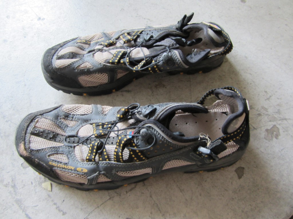 - 水鞋。这类鞋适合在水中行走,比如锡安峡谷(Narrows in Zion)。它们和普通鞋子一样,但采用网状材质,排水迅速。一双优质的凉鞋(不是人字拖)就足够了,但我们徒步了不少路程,所以这双鞋更舒适,而且不那么滑。