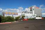 Hooters 赌场是一家中小型赌场,步行即可轻松抵达拉斯维加斯大道。它之前的名字是圣雷莫 (San Remo)。与同名的餐厅一样,整个 Hooters 赌场和酒店都以白色和橙色装饰,并配有大量的霓虹灯和硬木地板。这家赌场成功地复制了世界各地 Hooters 餐厅那种有趣却又俗气的氛围。你不能把任何以“爱胸部”为主题的生意看得太重(猫头鹰的形象骗不了任何人)。我于 2009 年 7 月 15 日在 Hooters 住了一晚。以下是我的评论。地点