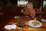 Hooters 餐厅:这家餐厅的特色菜和世界上其他 Hooters 餐厅的一样,都是布法罗鸡翅和啤酒。我得承认,我有点喜欢它。我的一个朋友说,她怀孕的时候特别想吃 Hooters 的鸡翅和龙舌兰。她决定只吃鸡翅,不喝龙舌兰。照片中的模特丽莎就很喜欢他们家的腌黄瓜。