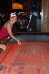 根据2009年《美国赌场指南》的数据,Hooters赌场占地27,546平方英尺。相比之下,米高梅大酒店的面积几乎是Hooters的六倍,为156,023平方英尺。根据内华达州博彩管理委员会的数据,Hooters赌场拥有25张赌桌、2张扑克桌(这也是我统计的),以及616台老虎机。相比之下,米高梅大酒店拥有178张赌桌、22张扑克桌和2,470台老虎机。我找到的赌桌游戏如下: