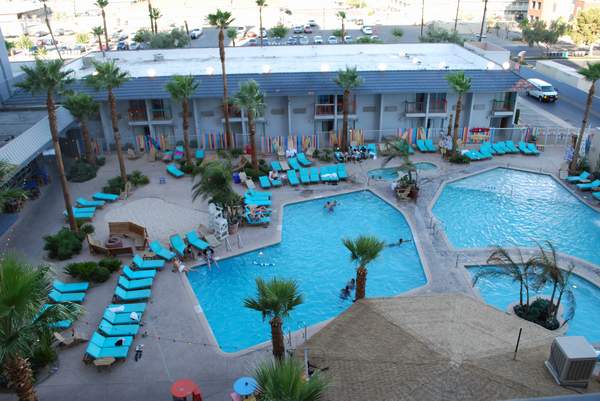 我住在那里的时候,高层的“海景房”价格是41.65美元,包含5.60美元的“度假费”,还不含12%的内华达州酒店税。这里我要说的是显而易见的事实:那里看不到海景,只有电梯旁的几块冲浪板。所谓的度假费唯一包含的、通常你不会想到的就是免费本地电话和免费电话。泳池边低层建筑的房间稍微便宜一些。