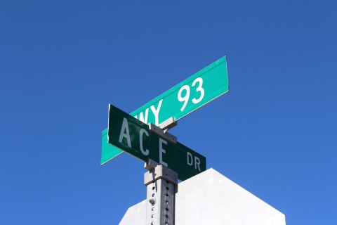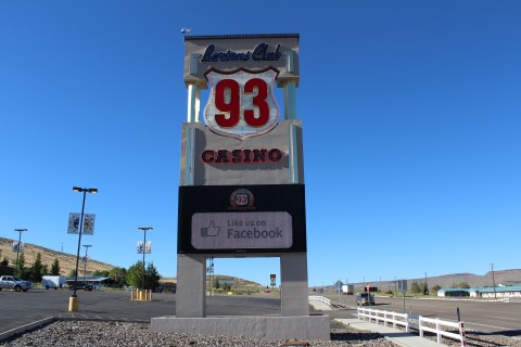 - 写着“进入太平洋时区”的高速公路标志牌就在 Jackpot 的正南边。高速公路上有足够的空间,可以将这个标志牌放置在“欢迎来到内华达”标志牌的正对面。