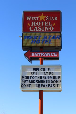 据我了解,赌场的名字是“Pony Express”,酒店的名字是“West Star Resort”。赌场很小,只有42台老虎机,没有赌桌。相比之下,酒店很大。然而,在我看来,称其为“度假村”似乎有点滥用。