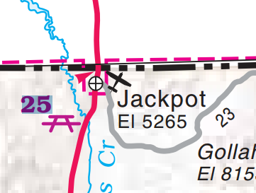 不知怎么的,我的网站总有不少完美主义者,我敢肯定,如果我现在不解决这个问题,肯定会有人写信告诉我,Jackpot 严格来说是在太平洋时区。这似乎是联邦交通部的立场。然而,为了证明内华达州认为 Jackpot 是使用山区时间,我提交了以下证据:- Jackpot邮局采用的是山区时间。不信的话,可以打电话问问。他们的电话号码是(775) 755-2252。