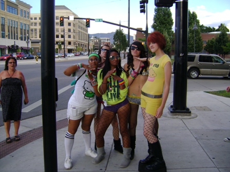 这跟我旅行前对盐湖城的印象可不完全一样。想想看,看到这群年轻女孩走在街上,我该有多惊讶。我跟贾斯汀说,我很想拍一张这样的照片,但又不好意思开口。贾斯汀从不害羞,她一把抢过我的相机,问她们能不能拍张照,她们很客气地摆了个姿势。我喜欢左边那位震惊的女士。