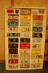 带有数字“41”或1941年的车牌。二战期间,由于金属短缺,许多州没有发放新车牌。例如,加利福尼亚州在1942年发放了一种标签,用于覆盖1941年车牌的顶部。1943年,又出现了一个“V”字标签,代表欧洲胜利。1944年,他们发放了挡风玻璃贴纸。