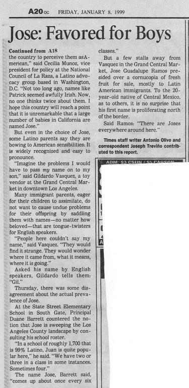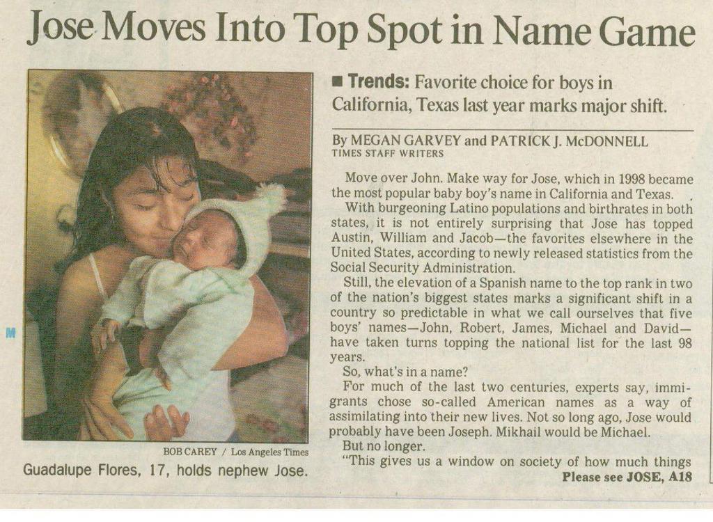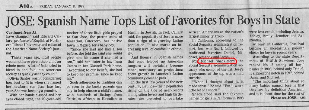 以下博文经nameberry.com网站(一个关于婴儿名字的领先网站)授权转载。我还附上了 1999 年 1 月 8 日《洛杉矶时报》头版一篇文章的扫描件。