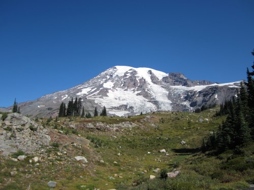 雷尼尔山是一座标志性的巍峨火山,位于西雅图东南方向54英里处。它的图像出现在所有华盛顿州的标准车牌上。它海拔14,410英尺,是喀斯喀特山脉最高的火山。作为一座休眠火山,它随时可能喷发,由于靠近西雅图/塔科马地区的数百万居民,可能会造成巨大的破坏。