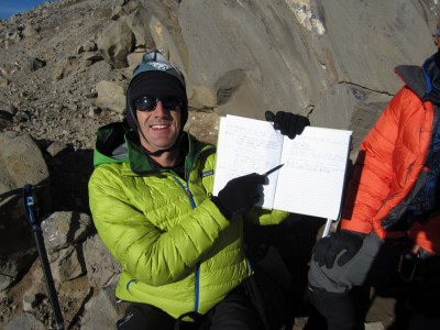 在缪尔营地,那些折返的客人热情地迎接我们,如同迎接征服的英雄。我的成功也归功于他们。多亏了他们的牺牲,剩下的队员才得以保持快速的登顶和返回。能够享受这份荣耀,并分享他们错过的路程,真是太棒了。有些人可能后悔当初折返的决定。然而,正如向导所说,目标不应该仅仅局限于登顶,而应该尽可能地挑战自我,并欣赏自己所取得的成就。换句话说,登山不应该被视为一场“通过/失败”的考验,而应该更多地去欣赏挑战本身以及对这项运动的热爱。不过,说实话,我为自己能够触摸到山顶上那块被冰爪磨损的地质勘探标记而感到无比自豪。