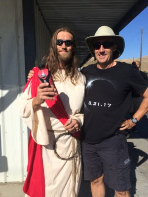 幸运的是,杂货店里有一卷价格不菲的透明胶带出售。可惜的是,尽管我费尽心思,还是有一些小孔可以让阳光透过。幸好我的背包里有一把小刀,所以我拆开一副备用的日食眼镜,用胶带把镜片粘在了小孔上。可惜的是,透过所有胶带和备用镜片看到的太阳图像模糊扭曲。此外,我还带了一台GoPro相机,准备把整个过程拍下来。我把它放在附近一辆车的车顶上。我自己的车上的视野被一根电线杆挡住了。在为相机调整好太阳滤镜,并为我的 GoPro 找到最佳拍摄位置后,剩下的就只有等待了。日偏食在早上 9:10 准时开始。我每隔几分钟就拍一张照片。后来我才知道,那些热衷于日食的爱好者们在当地学校租了露营地。这样一来,我就成了镇中心唯一一个带着重型三脚架和两英尺镜头的天文迷。在我 52 年的人生中,我对天文学的兴趣终于让我在女士们面前帮了点忙。有几位女士似乎对我的装备印象深刻。当然,我好心地邀请她们用我的相机观看日偏食。我和一位可爱的罗马尼亚女士聊得很开心,这是她第三次来这里观看日全食。谢天谢地,那些带着更大镜头和望远镜的科学迷们都没出现。我不仅喜欢女士们,也喜欢和大家聊天,非常开心。在那个时代,每个人都是为了同一个目的而来。这就像歌曲《想象》里的理想世界——没有政治、种族或宗教的隔阂。每个人都很友好,也很健谈。一件小事把我们团结在一起,至少我们能分享这一点。随着距离全食时间越来越近,人们纷纷就位。气温下降,天空暗了下来。人群变得更加安静。我的心跳加速。