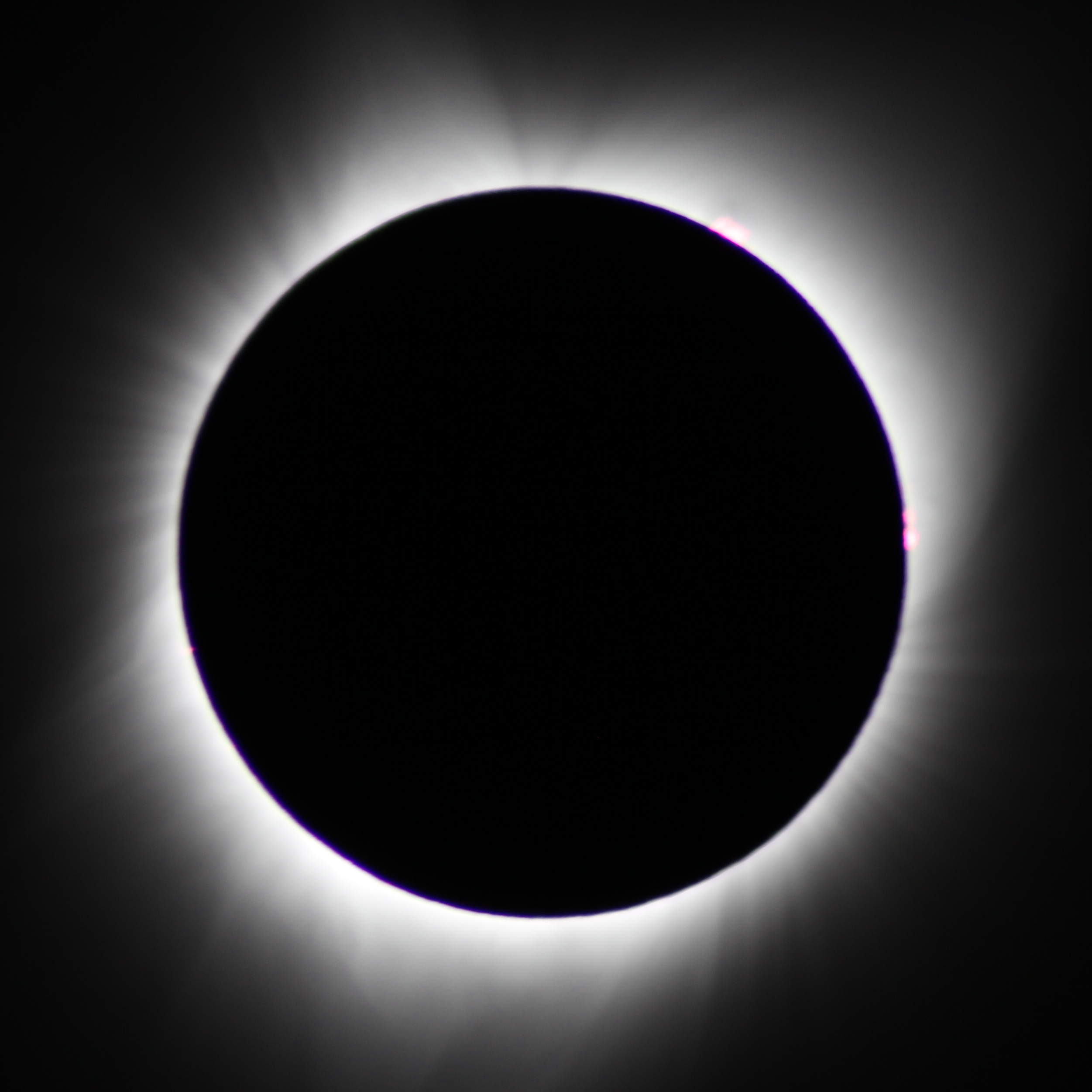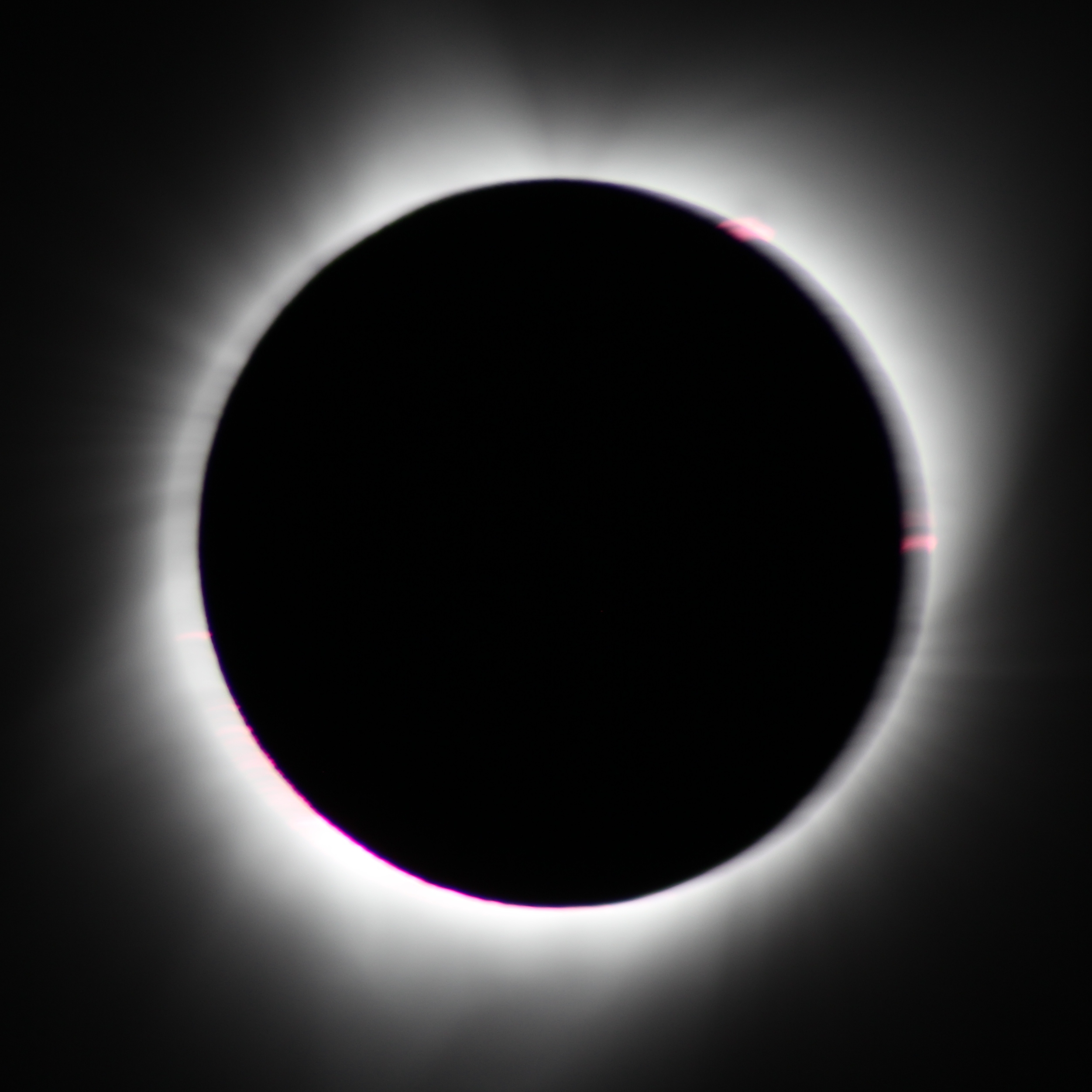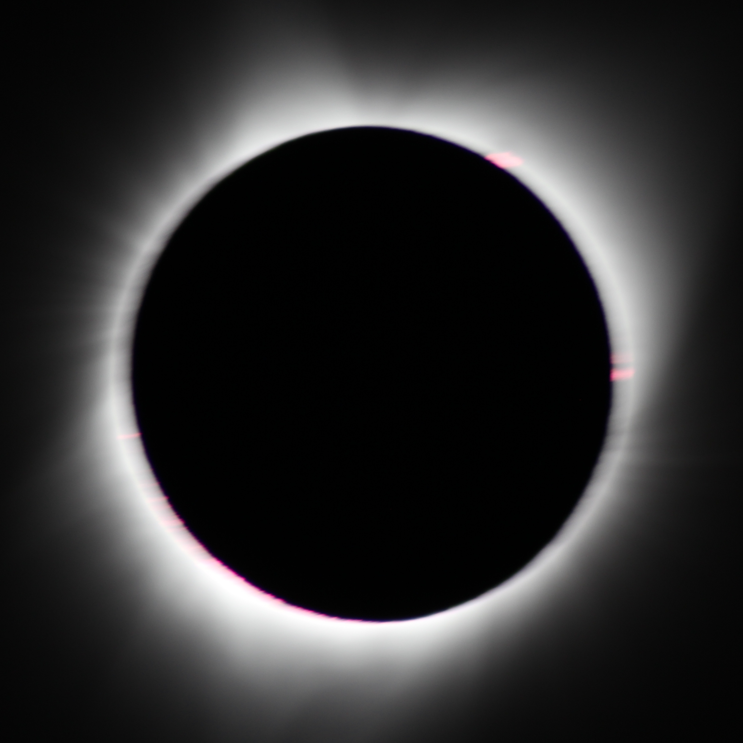 在这段宝贵的两分九秒全食期间,我拍了很多照片,尽管我的太阳滤镜已经损坏。为了能看到天空中被放大数倍的黑洞,我带着相机和所有装备来到这里,真是值得。我还停下来用肉眼欣赏它,就像七年前在中国那样。