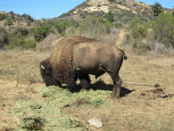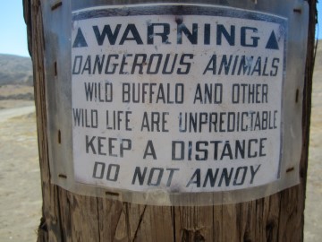 我们路过第一头野牛。或许我不应该靠得这么近,就像第二天看到一块牌子时说的那样。顺便说一句,这块牌子,以及几乎所有其他人,都错误地把它们叫做“野牛”。野牛是一种长相相似的动物,角更大,就像水牛一样,在北美并不常见( 来源)。