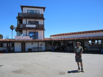 作为一名赌博作家,我必须拍下这些“二十一点”标志的照片。第二天的路程很轻松,只有七英里,大部分都是下坡。前两英里都是上坡下坡,直到我们到达卡塔利娜机场,也就是人们常说的“空中机场”。这是一座迷人的机场,有着我们熟悉的加州西班牙风格,里面有一家小礼品店和一家餐厅。我们在那里享用了一顿真正的美食,而不是之前吃的露营餐。这时,我儿子开始抱怨他的脚踝疼了。机场有一辆叫做Safari Bus的班车,从机场开往我们的下一个目的地小港,所以我为了稳妥起见,把儿子放在班车上,让他在小港等我,然后我就上路了。