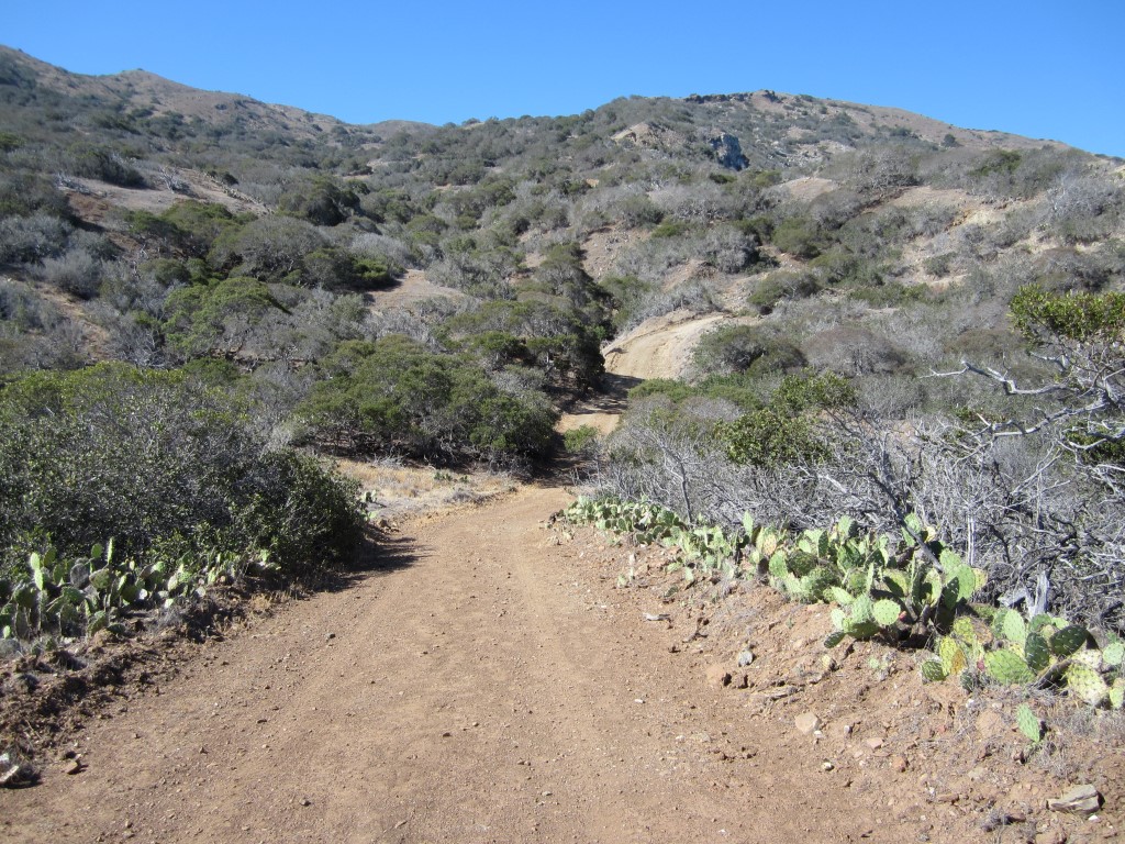 我选择的B计划是偷懒,跳过前6.5英里的路程。我们乘坐阿瓦隆巴士前往隐士峡谷,在那里开始了我们的徒步之旅。之后,我们从隐士峡谷出发,沿着大约1.5英里的小径,到达山脊线和TCT。这条岔路陡峭、炎热,到处都是急转弯,而且风景也不怎么样。然而,当你最终到达山脊线和主路时,路况会变得更加平坦,你会欣赏到美丽的景色,包括圣克莱门特岛,也就是卡塔利娜岛后面的岛屿。