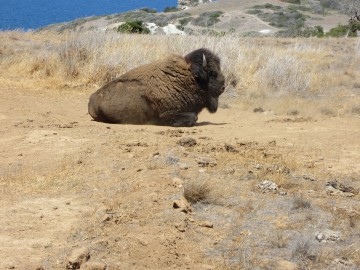 经历了残酷的第三天之后,我绝对不会再重复这段路了。前年我上次露营时租了自行车,沿着土路从双港出发,经过许多游艇俱乐部和夏令营,最终到达翡翠湾的童子军主营地。这段距离大约相当于从帕森斯码头走TCT的7英里。所以我们选择了平坦宜人的海岸线返回双港。到达时,距离原定的返回大陆的渡轮还有大约五个小时的空闲时间,所以我额外花了10美元换乘了一班更早的渡轮。谁能抗拒野牛的照片呢?这是一头在帕森斯码头附近吃草的野牛。