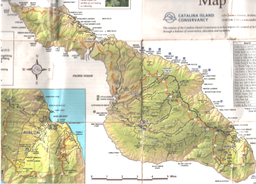 点击此处查看卡塔利娜岛完整尺寸的徒步地图。上面的图片只是我那张破旧的地图的扫描版。