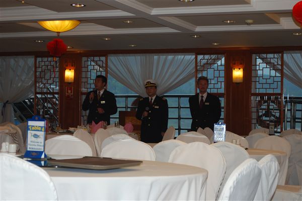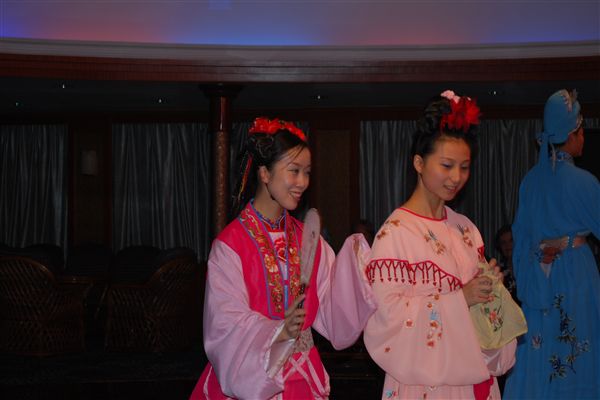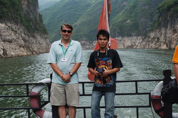 下午5点25分,我们穿过了瞿塘峡,三峡中的第三峡。这是三峡中最短的,但也是最美的。人民币10元纸币的背面就描绘了这一段的景色。晚上,有一场歌舞表演,邀请乘客们表演。我自告奋勇表演脱口秀。我特意告诉了游轮导游如何介绍自己,因为这引出了我的第一段表演。然而,最终还是由河道导游担任主持人,我的介绍是“迈克尔来表演了”。游轮导游警告我说,我们这群乘客一点幽默感都没有,他说得没错。选择参加表演的大多数都是老年人,其中很多人可能英语不太好。我觉得自从2005赛季NFL选秀以来,我的状态还从未这么糟糕过。