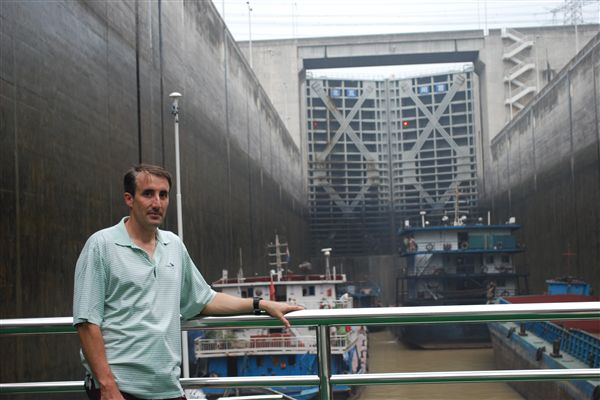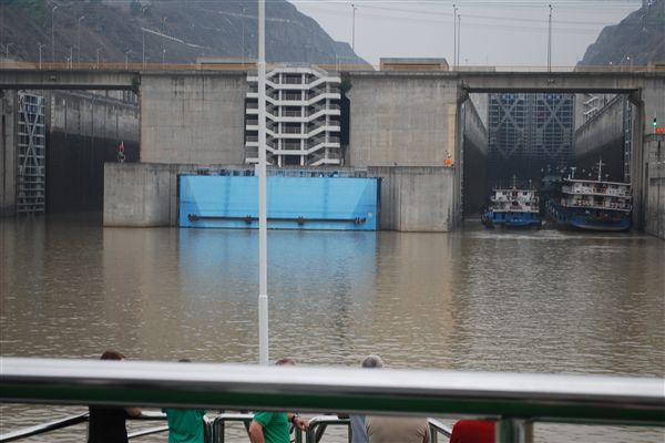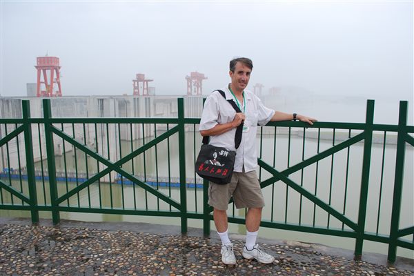 第六天是三峡大坝日。你们可能知道,三峡大坝是地球上面积最大的大坝,但既不是最长的,也不是最高的。最高的是胡佛大坝(没错!)。到达大坝之前,我们穿过了西陵峡,这是组成三峡的第一座大坝。下午1:45,我们前往大坝工地,从高处欣赏了各种景色。与胡佛大坝不同,大坝不允许行走,这也可以理解,因为大坝尚未完工。那天我们的导游是苏珊,她能说一口流利的英语,有时会打破剧本,讲一些笑话或冷知识。我五次去中国,她是我遇到的最好的导游。我们单独聊了聊电影。她是威尔·史密斯的忠实粉丝。我告诉她我很喜欢电影《我是传奇》,但她说这部电影对她来说太吓人了,所以她看了一半就离开了。她挑战我对中国电影的了解。说起来,我其实对中国电影的了解几乎全都始于巩俐,止于巩俐。那天晚上是魔术表演。我本来打算稍后和魔术师单独见面,进行私人授课,但一直没时间安排。