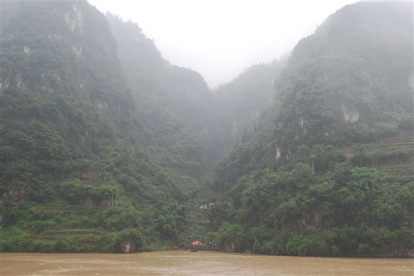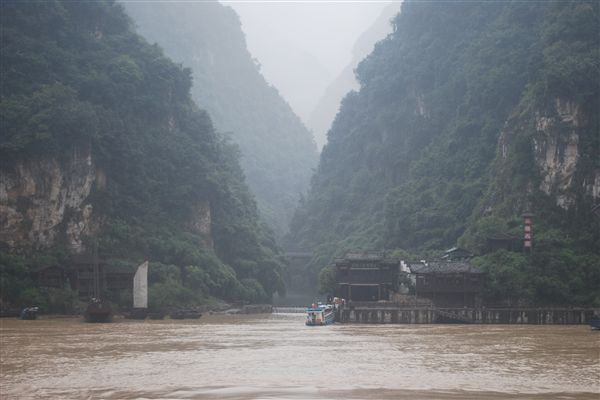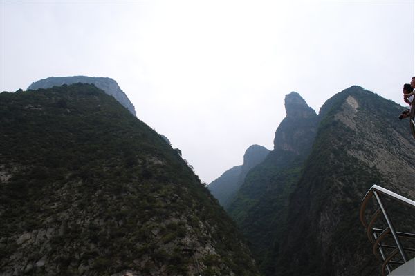 第七天是巫山之旅。我们首先穿过巫峡,这是三峡中的第二峡。午饭后,我们抵达巫山市,几乎直接从游轮上跳下,换乘一艘小船,沿着长江的支流大宁河逆流而上。当河道变窄到一定程度时,我们换乘了更小的船。陡峭的悬崖、猴子和“悬棺”是这次旅程的标志。悬棺可以在极其陡峭的悬崖上的洞穴里找到。我认为“悬棺”这个词用词不当,因为这些棺材不是悬挂着的,而是放在洞穴里。它们是很多年前被放置在那里的。我们的河流向导亚伦说,他们是如何把棺材送到那里的,至今仍是个谜。这当然让我感到困惑,因为它们位于数百英尺高的悬崖上。我猜想,他们使用的登山技巧和装备,和人们每天攀登拉斯维加斯郊外红岩国家公园的垂直悬崖时使用的一样。我猜想他们把棺材,或许还有尸体,拆开来回搬运了好几趟,才在山洞里组装起来。这听起来可能很费力,但这些人正是建造中国长城的人。